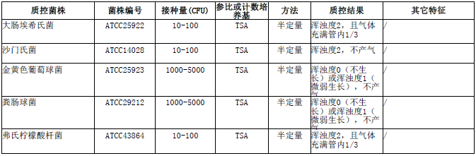 煌绿乳糖胆盐肉汤(BGLB)颗粒培养基微生物质控结果: