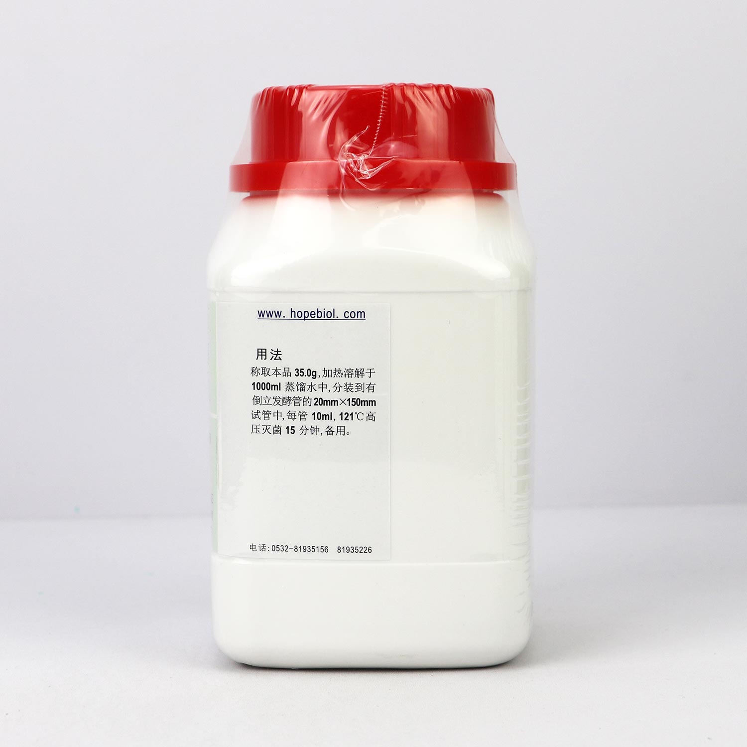称取本品 3.5 克,加热溶解于100ml蒸馏水中, 分装到有倒立发酵管的20mm×150mm试管中, 每管10ml ,121℃高压灭菌15分钟备用。