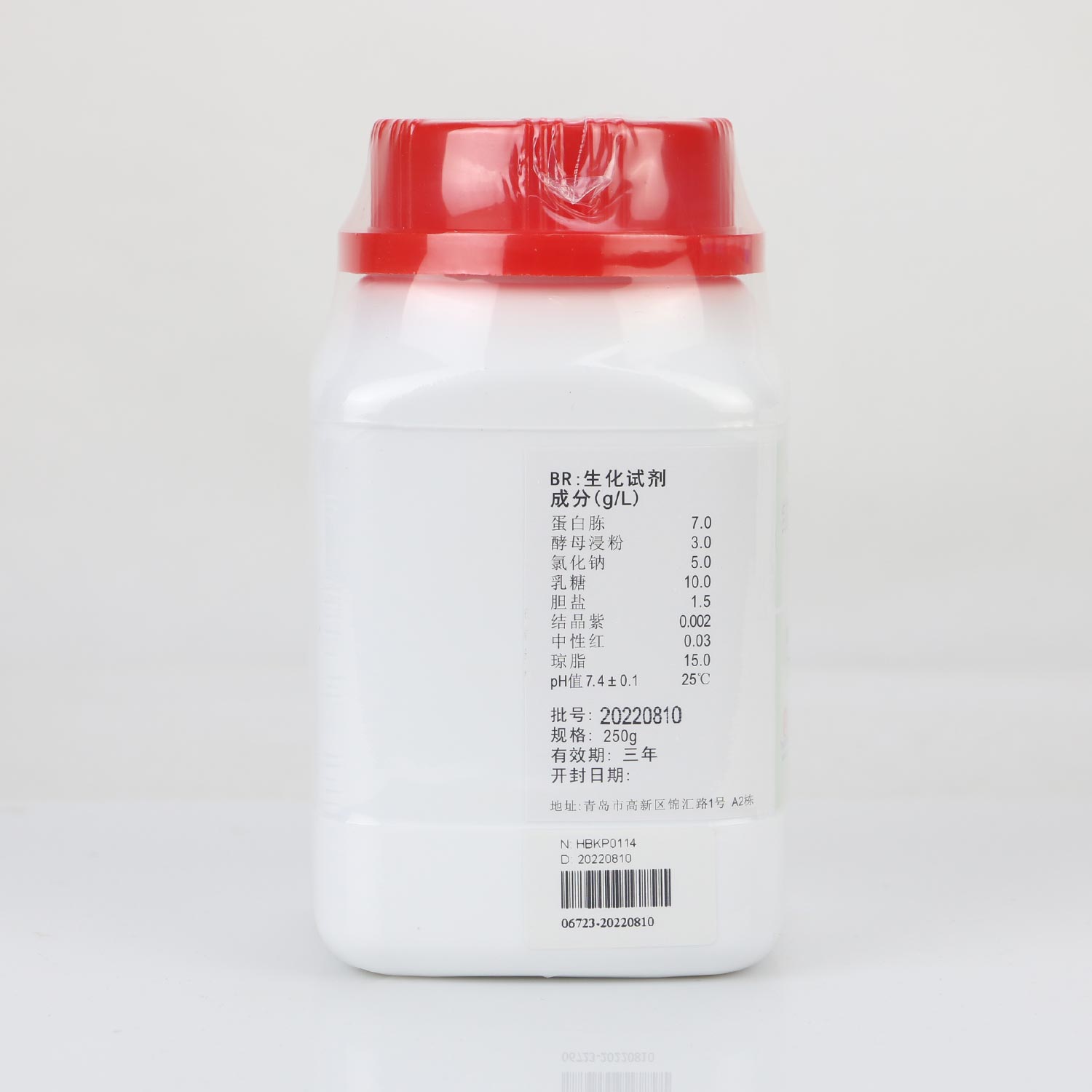 蛋白胨 7.0 酵母粉 3.0 氯化钠 5.0 乳糖 10.0 胆盐 1.5 结晶紫 0.002 中性红 0.03 琼脂 15.0 pH值7.4 ± 0.1 25℃