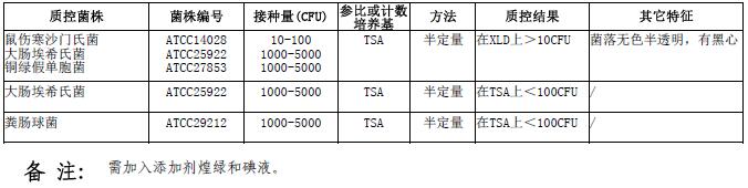 四硫磺酸盐煌绿增菌液基础(TTB)微生物质控结果: