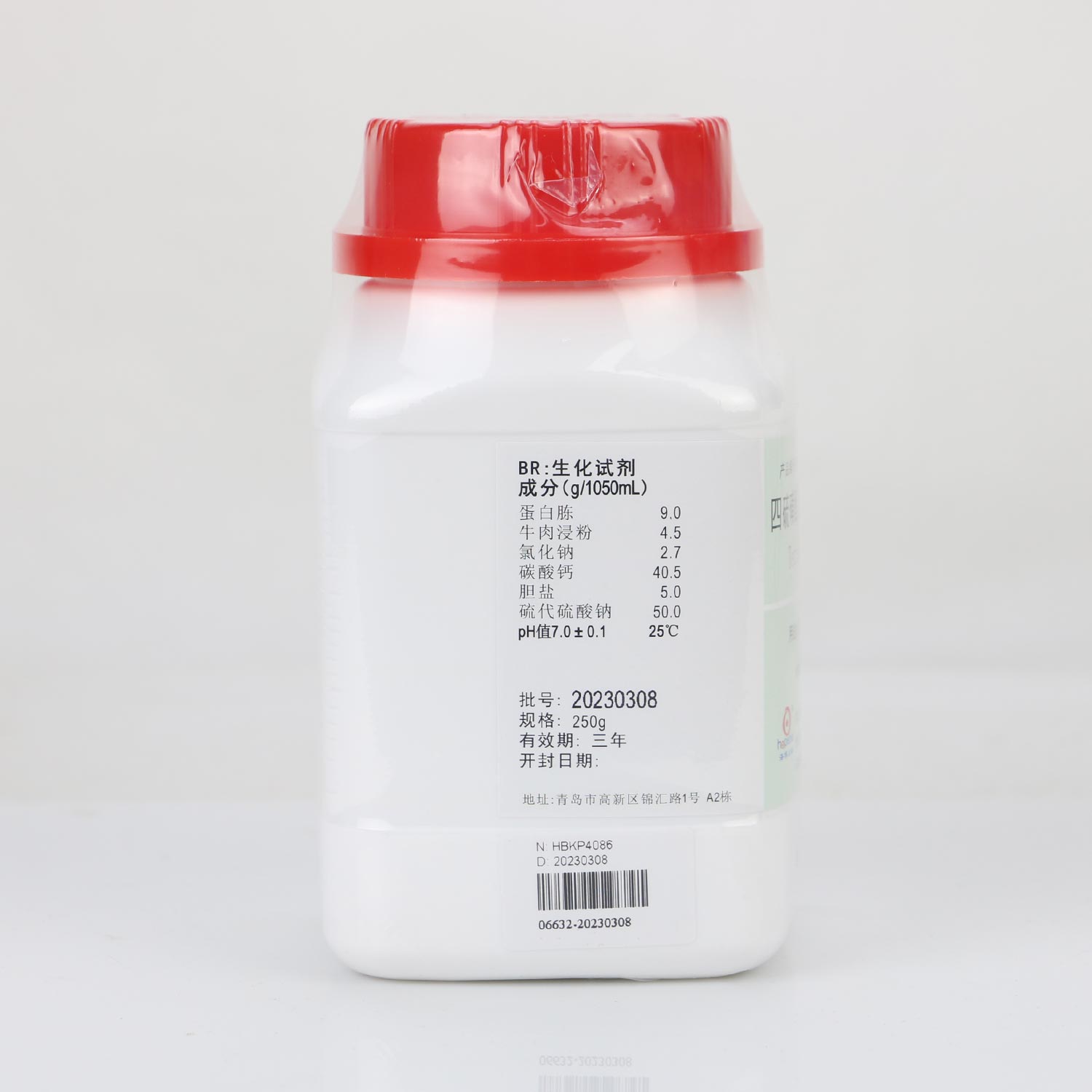 蛋白胨 9.0 牛肉粉 4.5 氯化钠 2.7 碳酸钙 40.5 胆盐 5.0 硫代硫酸钠 50.0 pH值7.0 ± 0.1 25℃