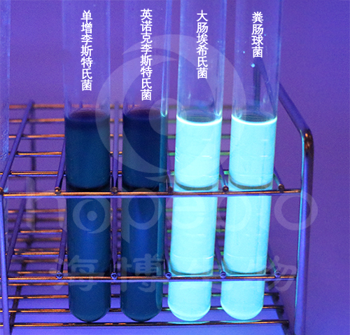 在Fraser培养基管中,单增李斯特氏菌,英诺克李斯特氏菌变黑,荧光消失;