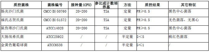 按标签用法制备培养基,接种以下质控菌株,放置36±1℃需氧培养18-24小时。
