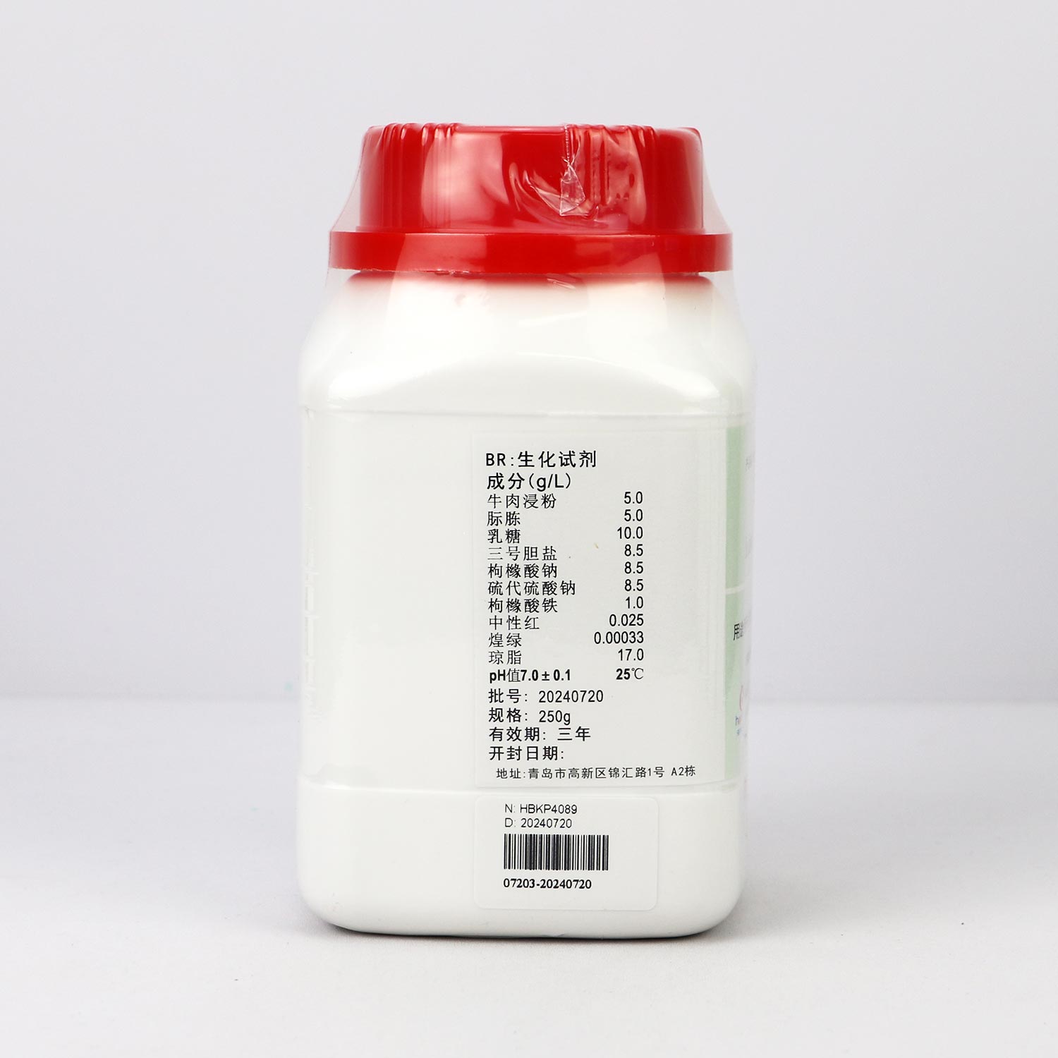 牛肉浸粉 5.0 䏡胨 5.0 乳糖 10.0 三号胆盐 8.5 枸橼酸钠 8.5 硫代硫酸钠 8.5 枸橼酸铁 1.0 中性红 0.025 煌绿 0.00033 琼脂 17.0 pH值7.0 ± 0.1 25℃