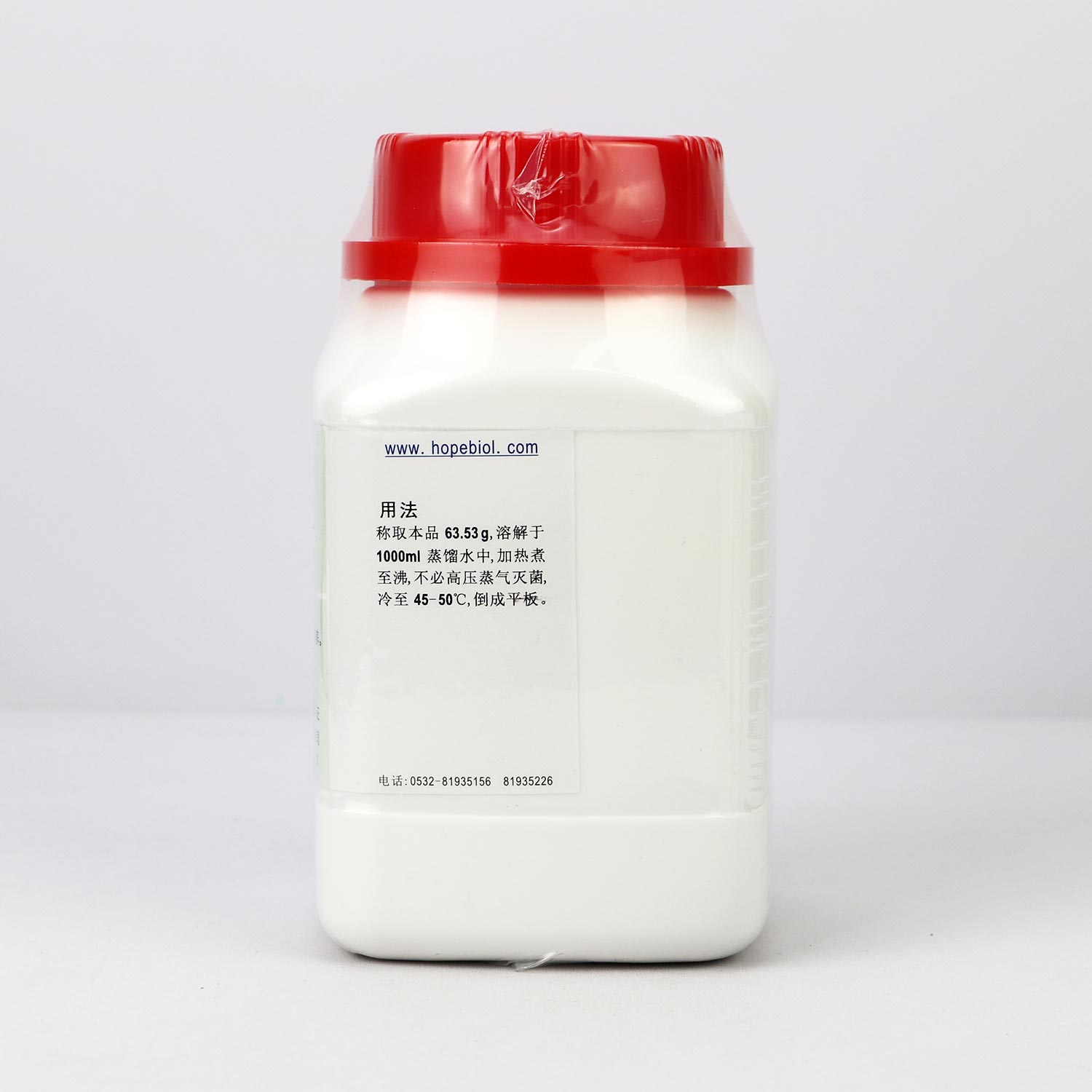 称取本品63.53g,溶解于1000ml 蒸馏水中,加热煮至沸,不必高压蒸气灭菌,冷至45-50℃,倒成平板。