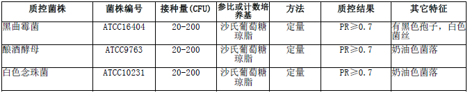 按标签用法制备培养基,接种以下质控菌株,放置28±1℃需氧培养48-96小时。