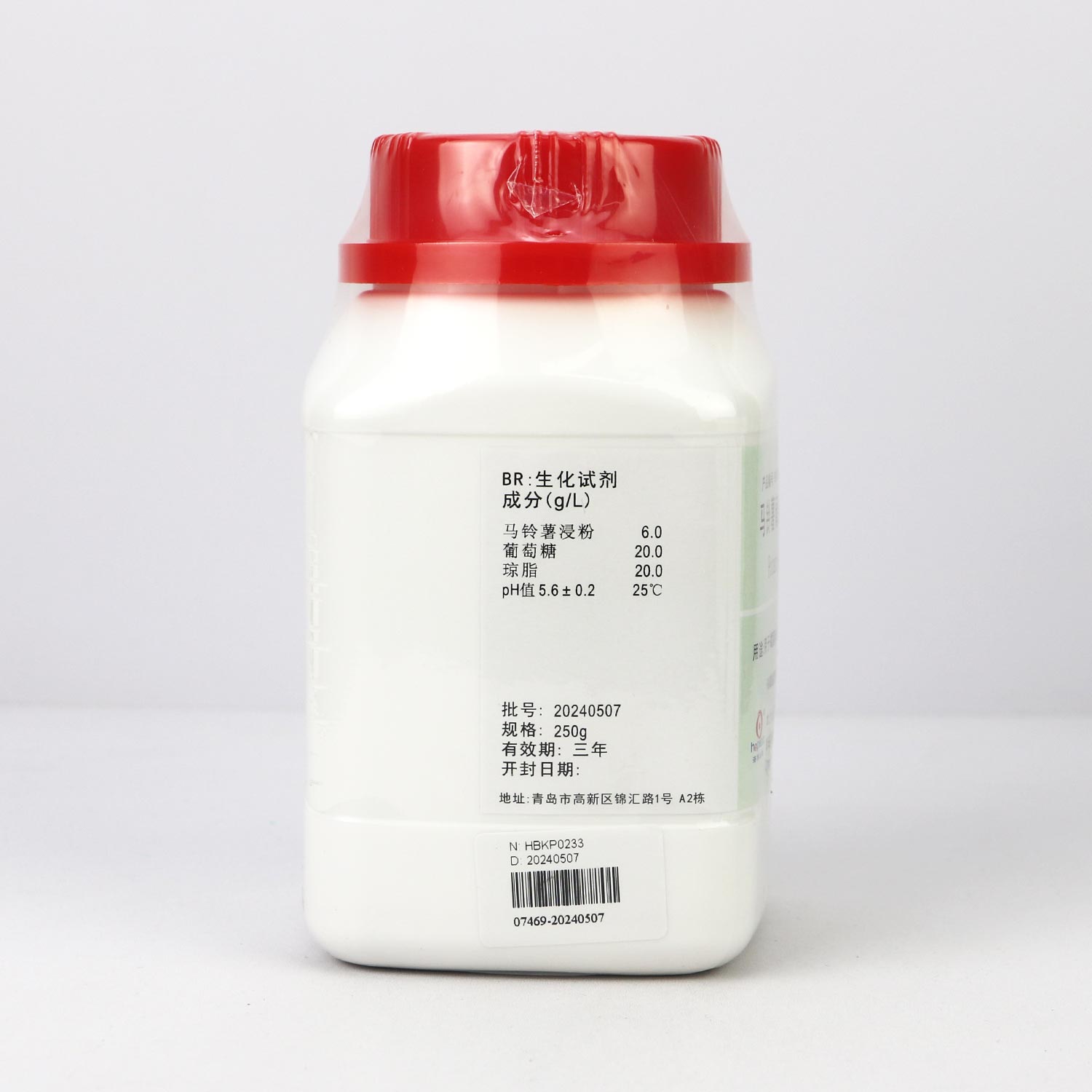 注:培养基中使用的马铃薯浸粉中含有较多淀粉类成分,灭菌后的培养基稍浑浊,可能出现少量白色沉淀,摇匀倒平板即可。灭菌前加热煮沸溶解培养基再进行灭菌不易出现沉淀。