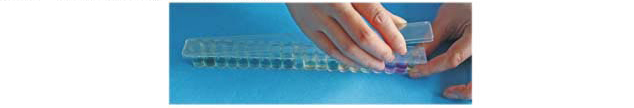 从包装盒中取出一条生化鉴定条,打开盖子,用打孔器开孔或直接把膜撕掉。如果染菌或变色,则不能使用,重新拿一条。注:打孔器用75%酒精擦拭后使用。
