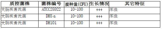 按标签用法制备培养基,接种以下质控菌株,放置36±1℃需氧培养18-24小时。