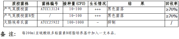 按标签用法制备培养基,接种以下质控菌株,放置37±1℃厌氧培养24-48小时。
