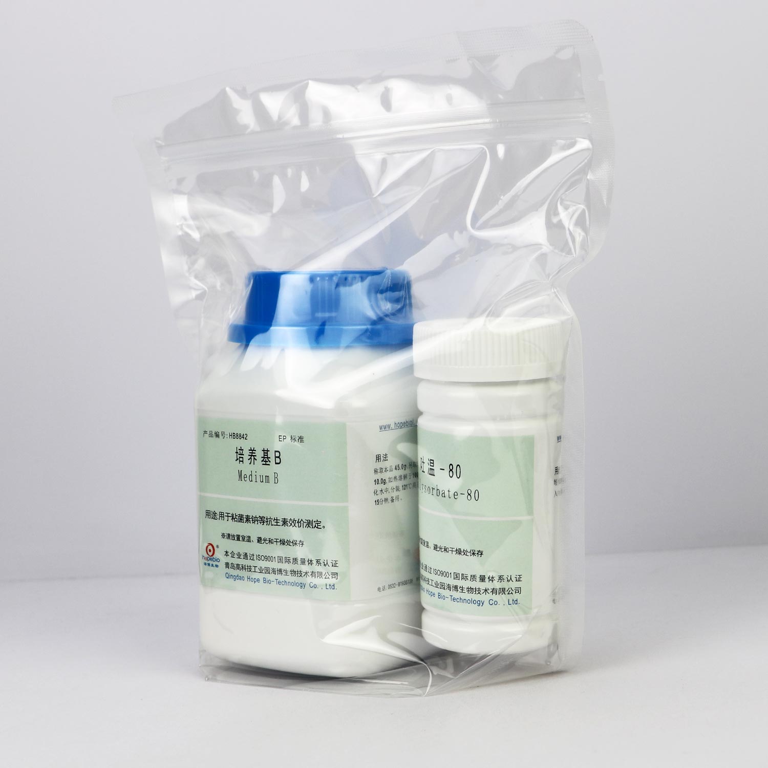 称取本品45.0g,另取吐温80 10.0g,加热溶解于1000ml纯化水中,分装,121℃高压灭菌15min,备用。