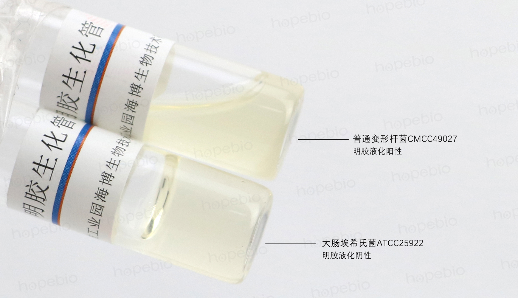 方法:取可疑菌落穿刺接种在明胶培养基内,35℃培养24小时,取出后放2-8度冰箱10-30min,如果仍为液体,实验结果为阳性,否则为阴性。