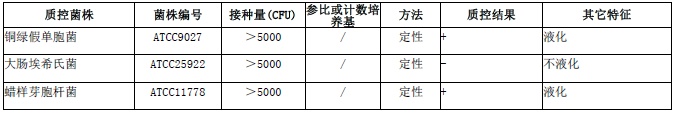 接种以下质控菌株,放置36±1℃需氧培养72小时。
