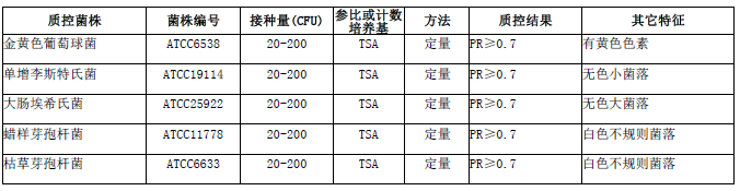 按标签用法制备培养基,接种以下质控菌株,放置36±1℃需氧培养24-48小时。
