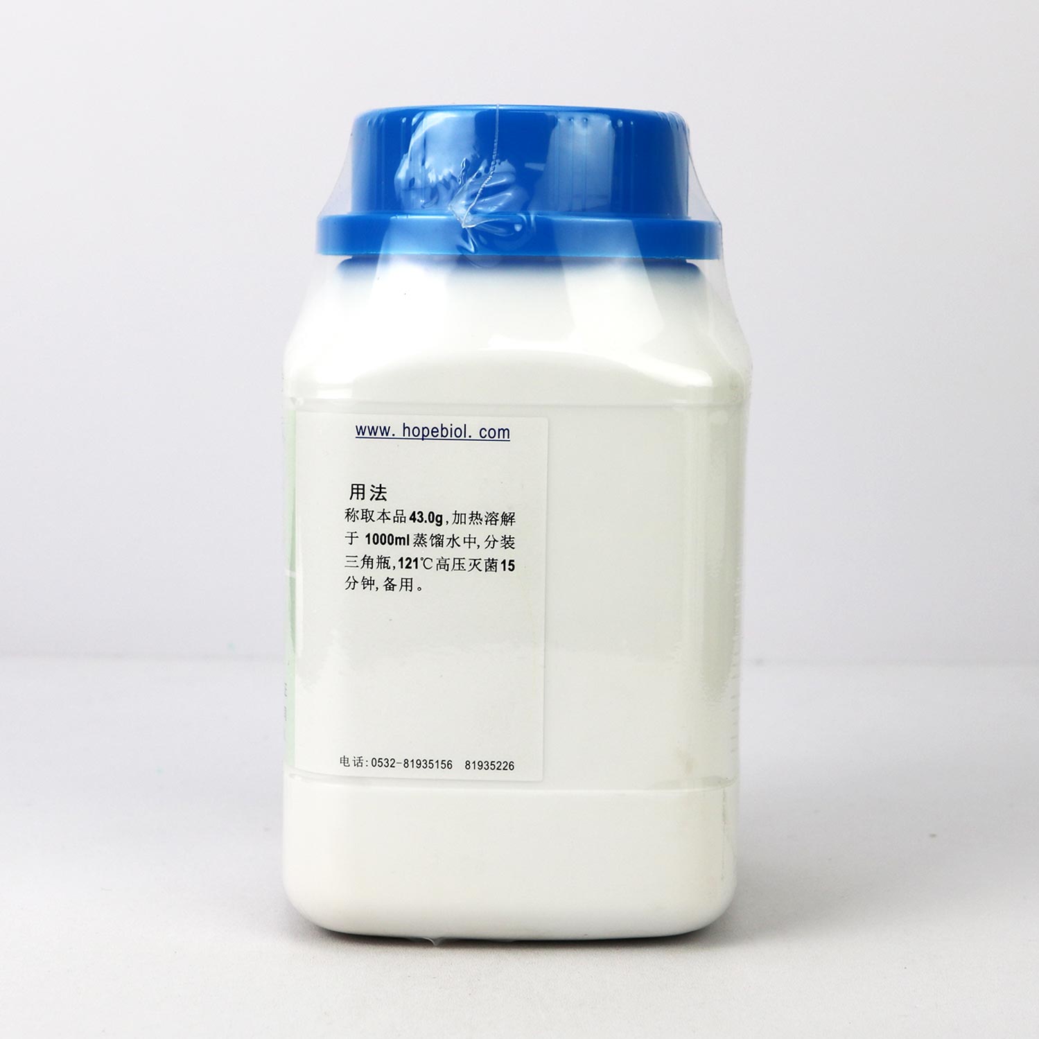用法:称取本品43.0g,加热溶解于1000ml蒸馏水中,分装三角瓶,121℃高压灭菌15min,备用。