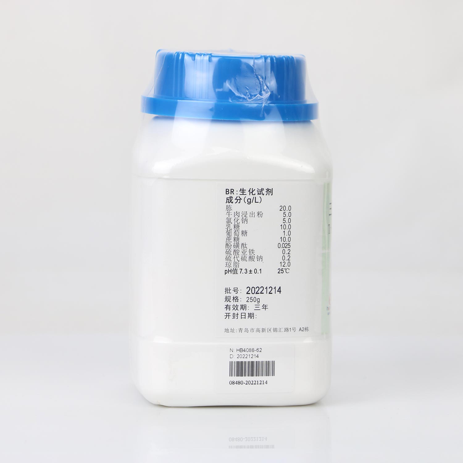 胨 20.0 牛肉浸出粉 5.0 氯化钠 5.0 乳糖 10.0 葡萄糖 1.0 蔗糖 10.0 酚磺酞 0.025 硫酸亚铁 0.2 硫代硫酸钠 0.2 琼脂 12.0 pH值7.3±0.1 25℃