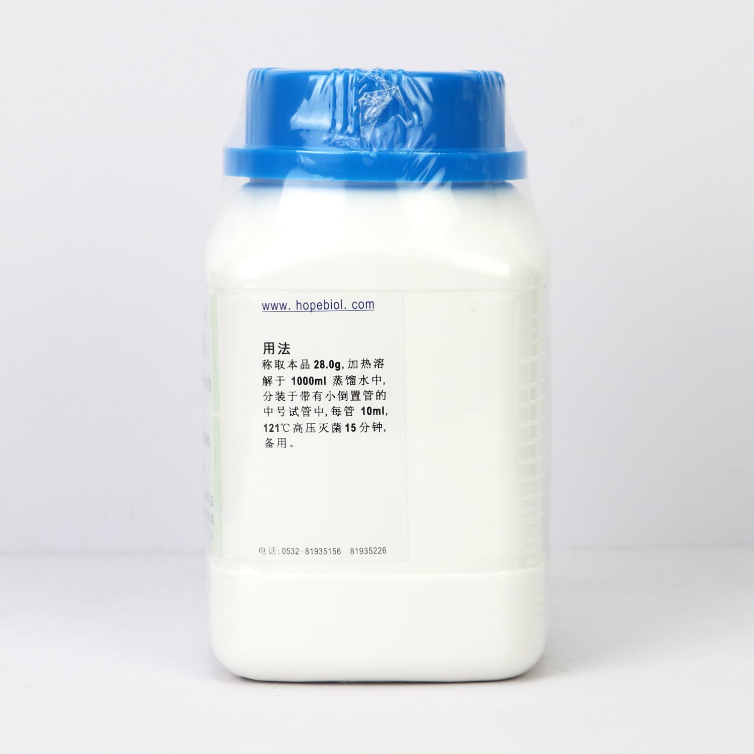 称取本品28.0g,加热搅拌溶解于1000ml蒸馏水中,分装于带有小倒置管的中号试管中,每管10ml,121℃高压灭菌15分钟,备用。