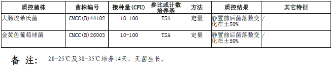 按标签用法制备培养基,接种以下质控菌株,放置25℃需氧培养45分钟。