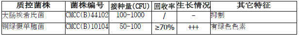 按标签用法制备培养基,接种以下质控菌株,放置30-37℃需氧培养18-24小时。