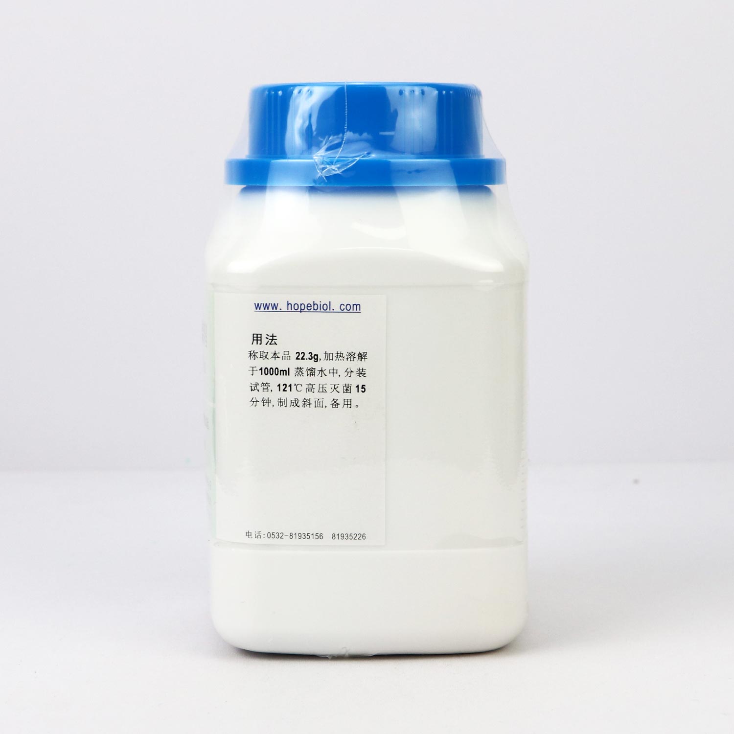 用法:称取本品 22.3g,加热溶解于 1000ml 蒸馏水中,分装试管,121℃高压灭菌 15 分钟,制成斜面,备用。