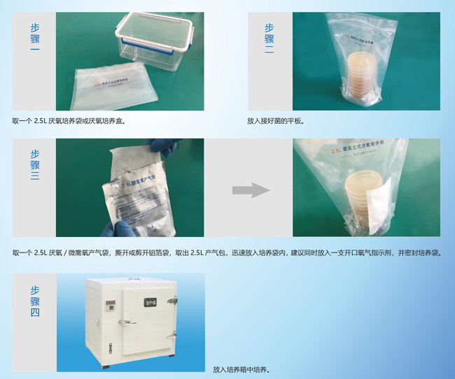 2. 若采用大于2.5L的培养袋,应根据其体积相应的增加微需氧产气包的数量。