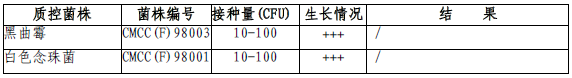 按标签用法制备培养基,接种以下质控菌株,放置23-28℃需氧培养96-120小时。