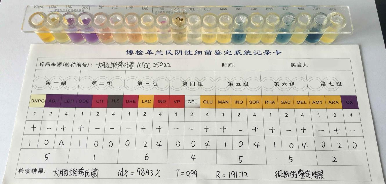 冻干菌种复苏接种至TSA平板。菌种活化后划线接种于EMB平板,同时进行革兰氏染色镜检及博检革兰氏阴性细菌鉴定系统生化检测。