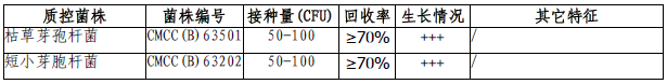 按标签用法制备培养基,接种以下质控菌株,放置36±1℃需氧培养14-16小时。 注:回收率计算时,用TSA琼脂做对照培养基