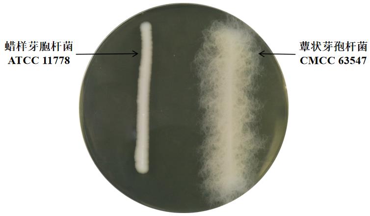 蜡样芽孢杆菌呈粗糙山谷状生长;蕈状芽孢杆菌呈根状生长