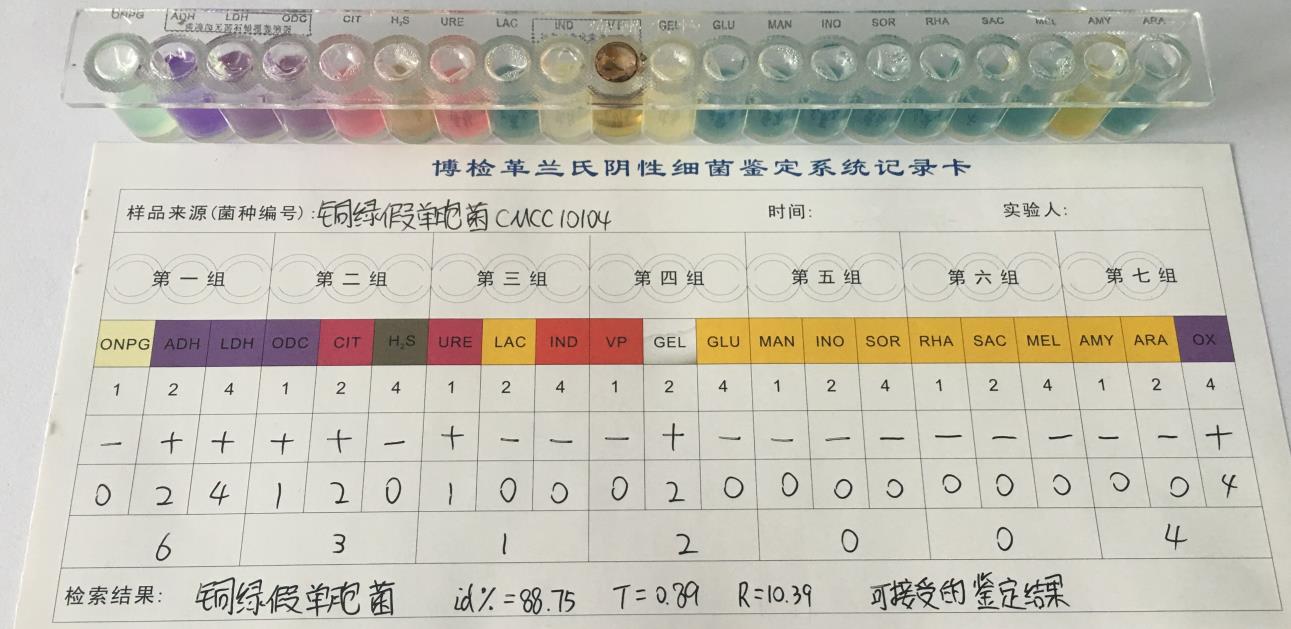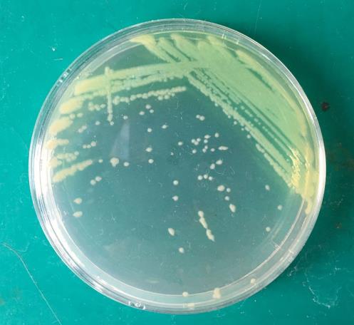 冻干菌种复苏接种至TSA平板。菌种活化后划线接种于溴化十六烷基三甲铵平板,同时进行革兰氏染色镜检、氧化酶试纸、乙酰胺肉汤、金氏B培养基、绿脓菌素测定用培养基(PDP)以及博检革兰氏阴性细菌鉴定系统生化检测。