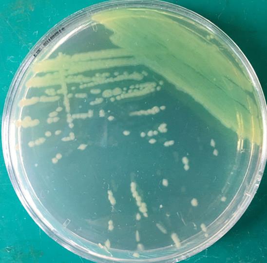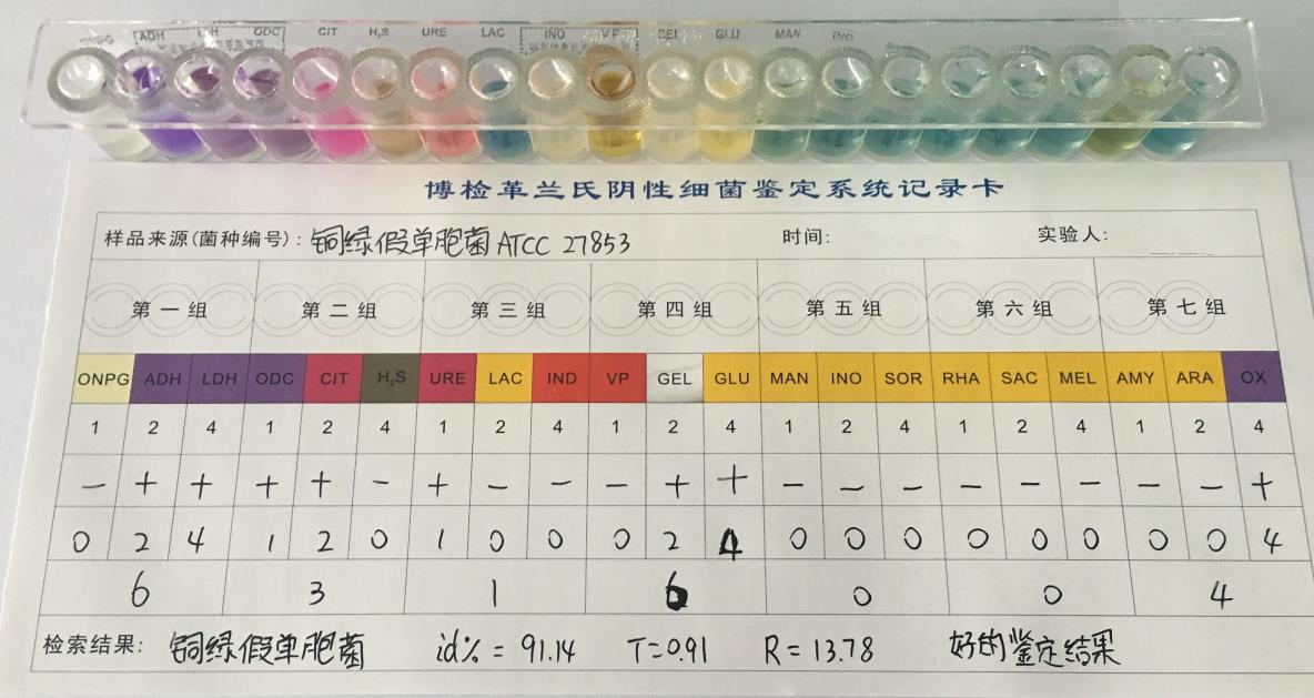冻干菌种复苏接种至TSA平板。菌种活化后划线接种于溴化十六烷基三甲铵平板,同时进行革兰氏染色镜检、氧化酶试纸、乙酰胺肉汤、金氏B培养基、绿脓菌素测定用培养基(PDP)以及博检革兰氏阴性细菌鉴定系统生化检测。