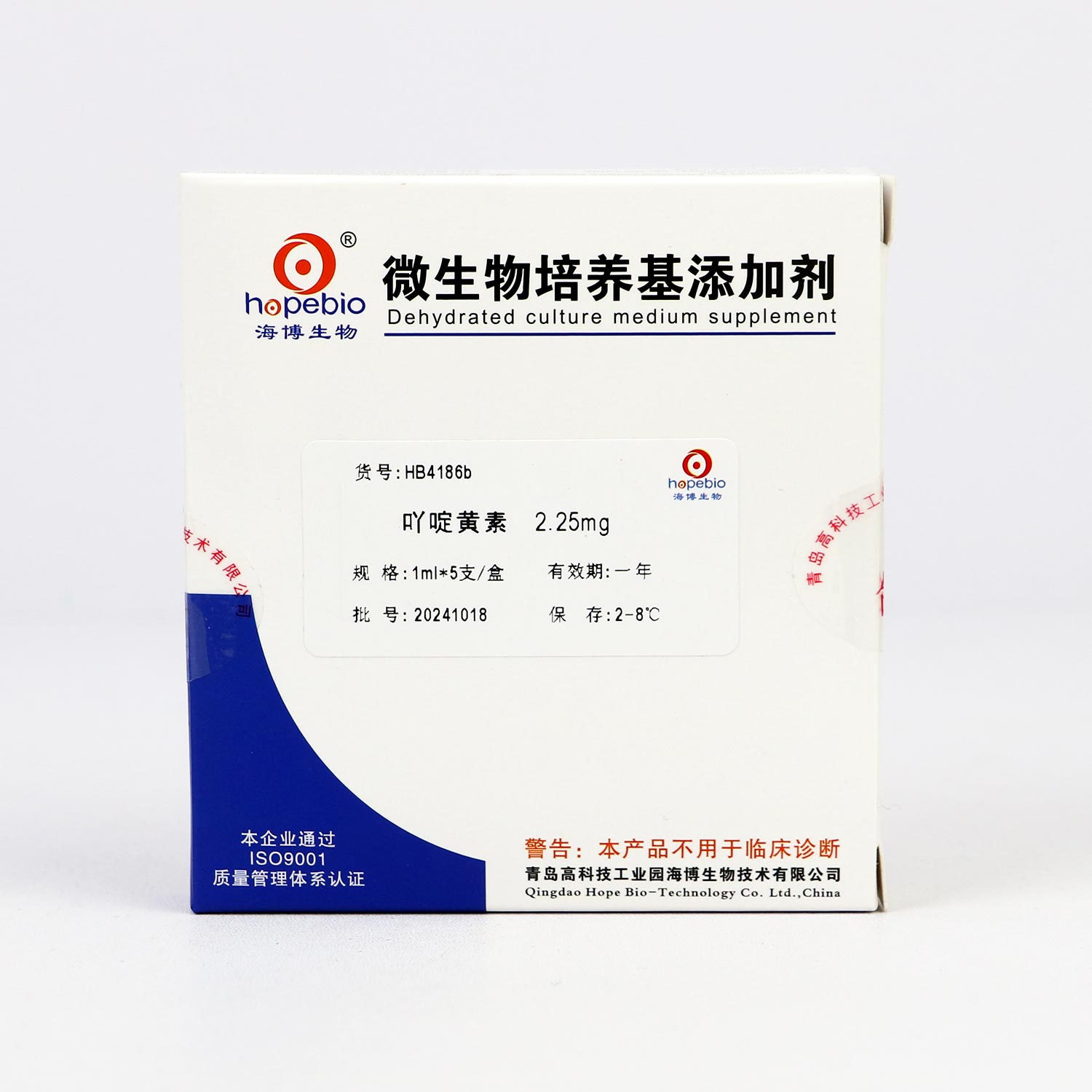 每225ml HB4191改良缓冲蛋白胨水(MBP)添加1支 HB4160c 吖啶黄素(2.7mg) |