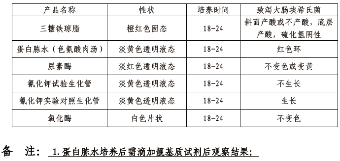大肠埃希氏菌:斜面产酸或不产酸(黄色或红色),底层产酸(黄色)
