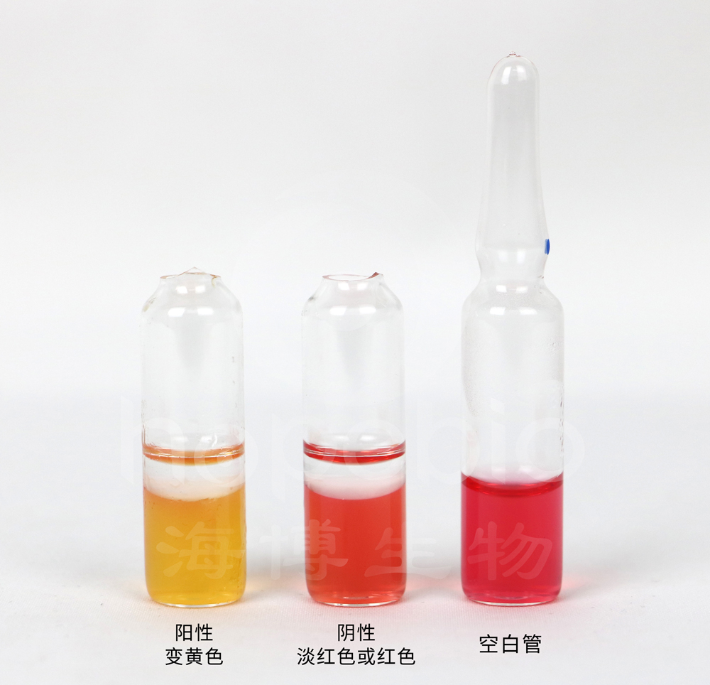 酒石酸盐试验是肠杆科菌鉴定常用的生化实验,有一些细菌可以产生特定的酶将酒石酸盐分解为乙酸等比较简单的有机酸,使pH值下降,遇到酚红指示剂后变黄色,而不产该酶的细菌仍为红色。需要注意的是,该实验需在接菌后覆盖一层无菌的液体石蜡以隔绝氧气,避免乙酸等氧化分解,导致pH值重新升高又变为红色,从而造成假阴性。
