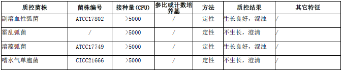 接种以下质控菌株,放置36±1℃需氧培养24小时