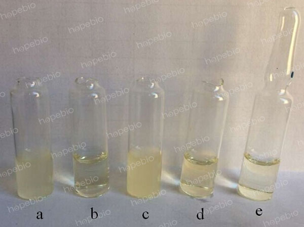 a:副溶血性弧菌,b:霍乱弧菌,c:溶藻弧菌,d:嗜水气单胞菌,e:空白对照