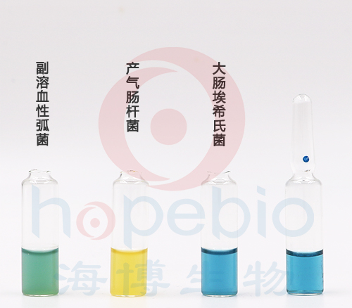 在3%氯化钠纤维二糖中,副溶血性弧菌,大肠埃希氏菌不变色,产气肠杆菌变黄色。