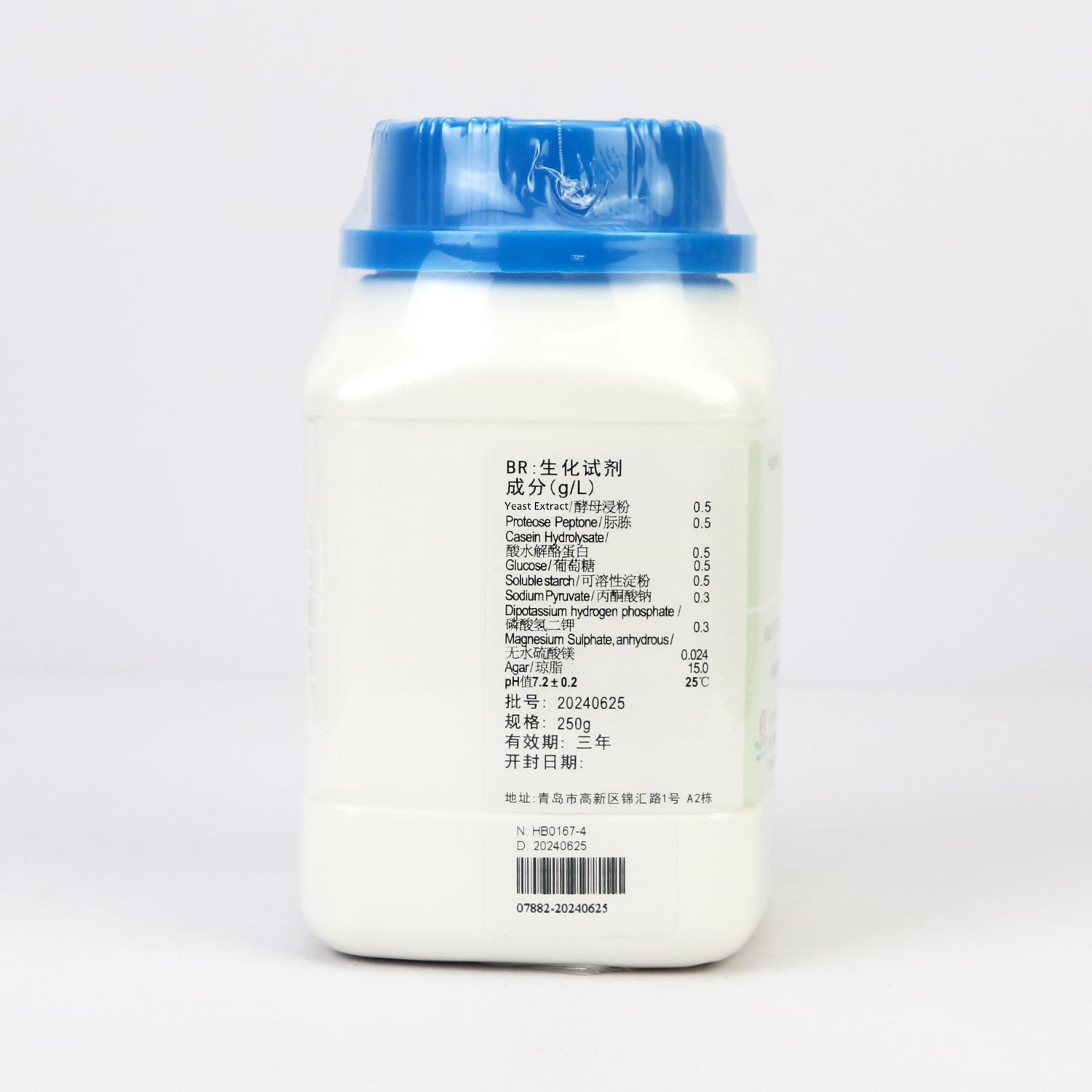 酵母浸粉、月示胨、酸水解酪蛋白提供氮源、维生素、生长因子;葡萄糖、为可发酵糖类;可溶性淀粉可以吸收菌在复苏过程产生的有害物质;丙酮酸钠可增强细菌的复苏。磷酸氢二钾为酸碱缓冲剂;无水硫酸镁提供二价阳离子;琼脂为凝固剂。