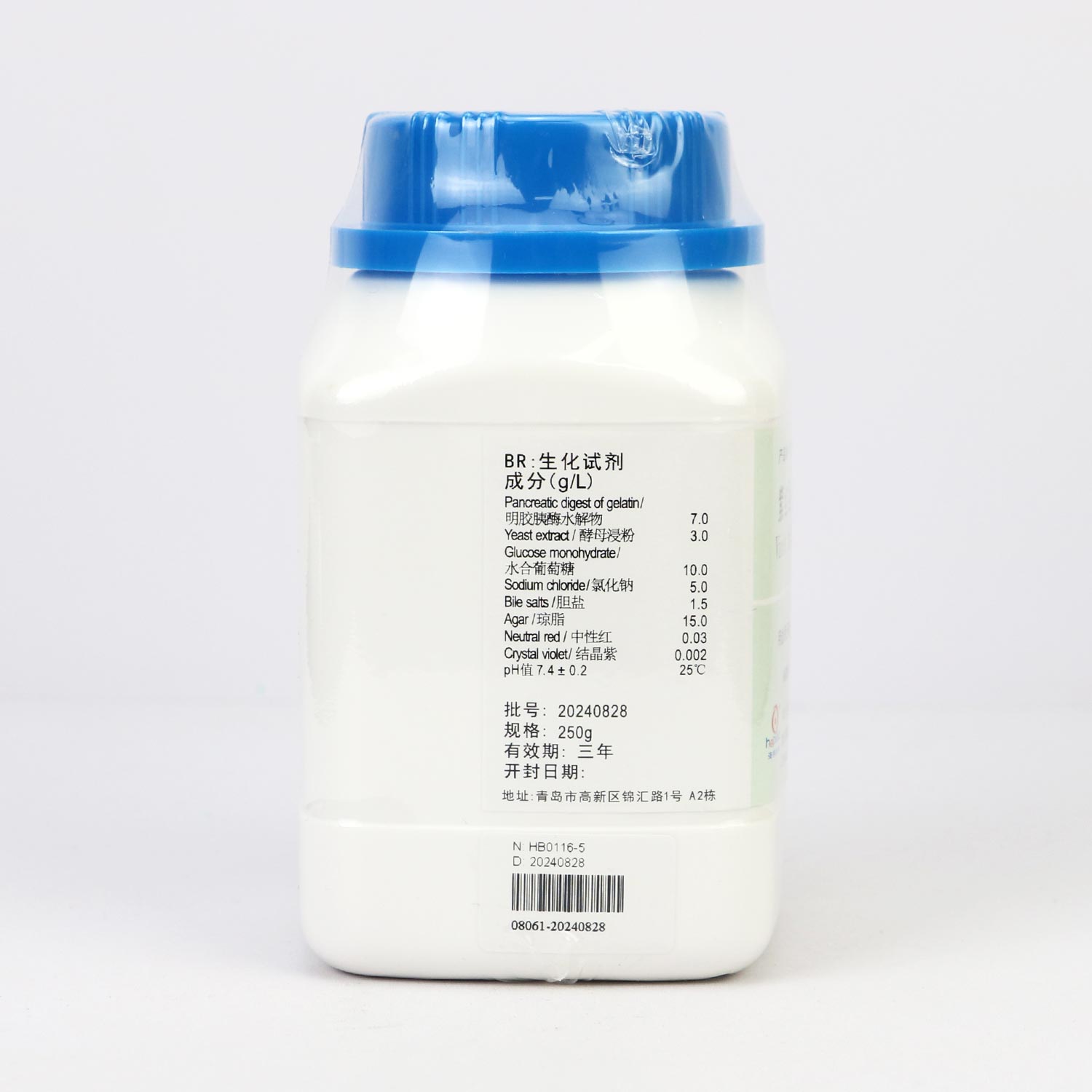 胰酶解明胶和酵母浸粉提供碳氮源和微量元素;水合葡萄糖是可发酵的糖类;氯化钠可维持均衡的渗透压;脱氧胆酸钠和结晶紫抑制革兰氏阳性菌,特别抑制革兰氏阳性杆菌和粪肠球菌;中性红为pH 指示剂。