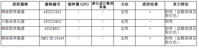 按标签用法制备培养基,接种以下质控菌株,放置36±1℃需氧培养24±2小时。