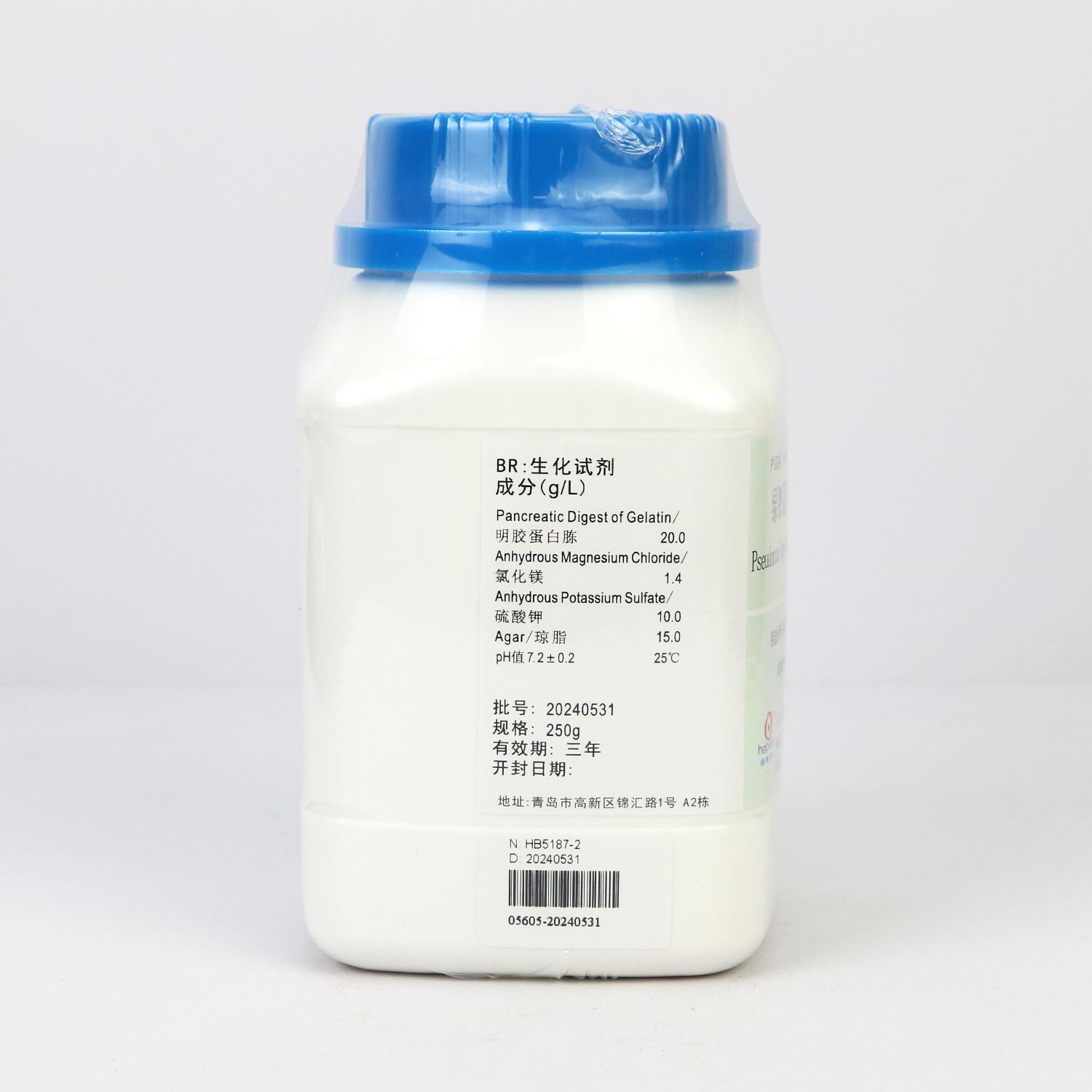 检验原理: 蛋白胨和甘油提供碳氮源;氯化镁和硫酸钾促进绿脓色素和荧光素的产生;琼脂是培养基的凝固剂。