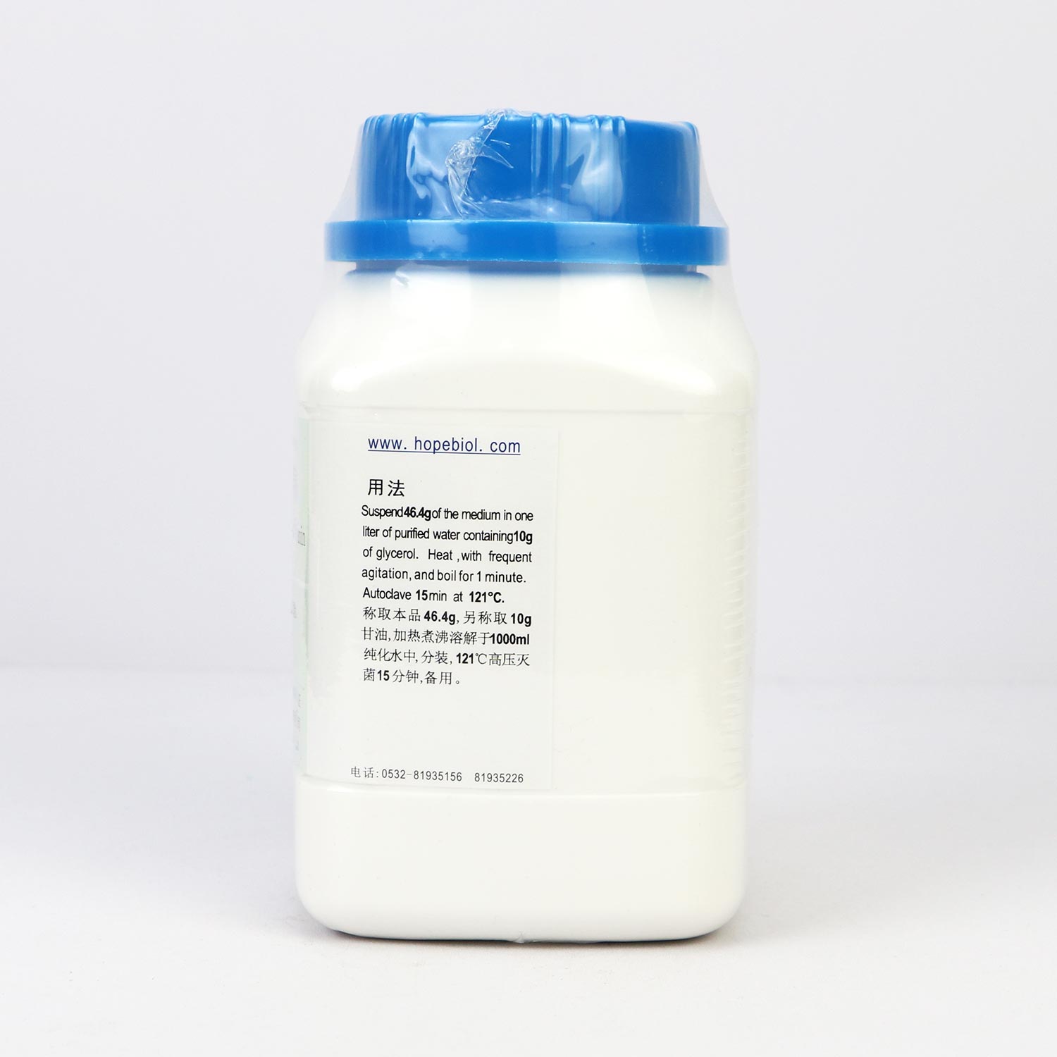 Suspend 46.4g of the medium in one liter of purified water containing10g of glycerol. Heat , with frequent agitation, and boil for 1 minute. Autoclave 15 min at 121°C. 称取本品 46.4g,另称取 10g甘油,加热煮沸溶解于1000ml纯化水中,分装 ,121℃高压灭菌 15 分钟,备用。