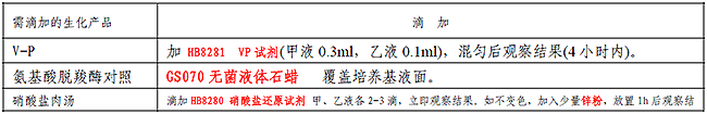 取一内盛2ml无菌水或无菌生理盐水试管,用接种针从营养琼脂平板上挑取单个菌落至无菌生理盐水中仔细研磨制成0.5麦氏浊度的均一细菌悬液,每孔加入100ul菌悬液。其中动力-硝酸盐采用穿剌接种,葡萄糖需加灭菌石蜡覆盖液面。