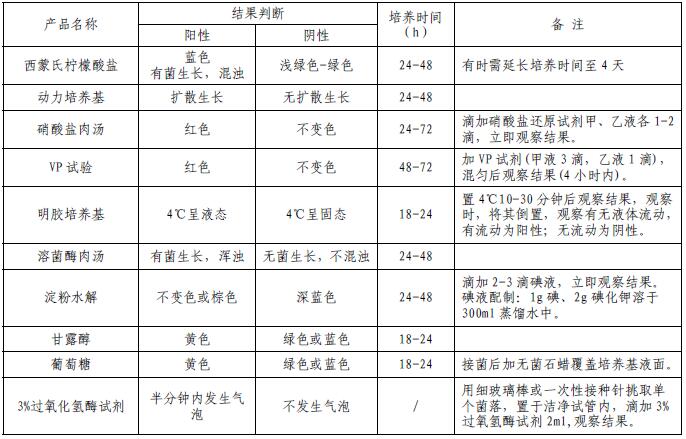从选择性琼脂平板(MYP)上至少选取2个典型菌落或可疑菌落,接种于营养琼脂做成纯培养(36±1℃培养18-24h),取纯化菌落做过氧化氢酶、西蒙氏柠檬酸盐、动力-硝酸盐培养基、VP试验、木糖-明胶、甘露醇、葡萄糖试验。请参照GB/T4789.14标准判断结果。