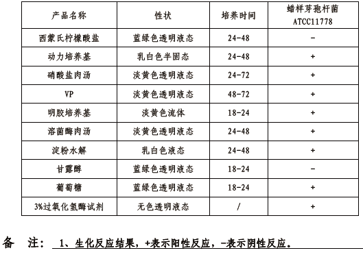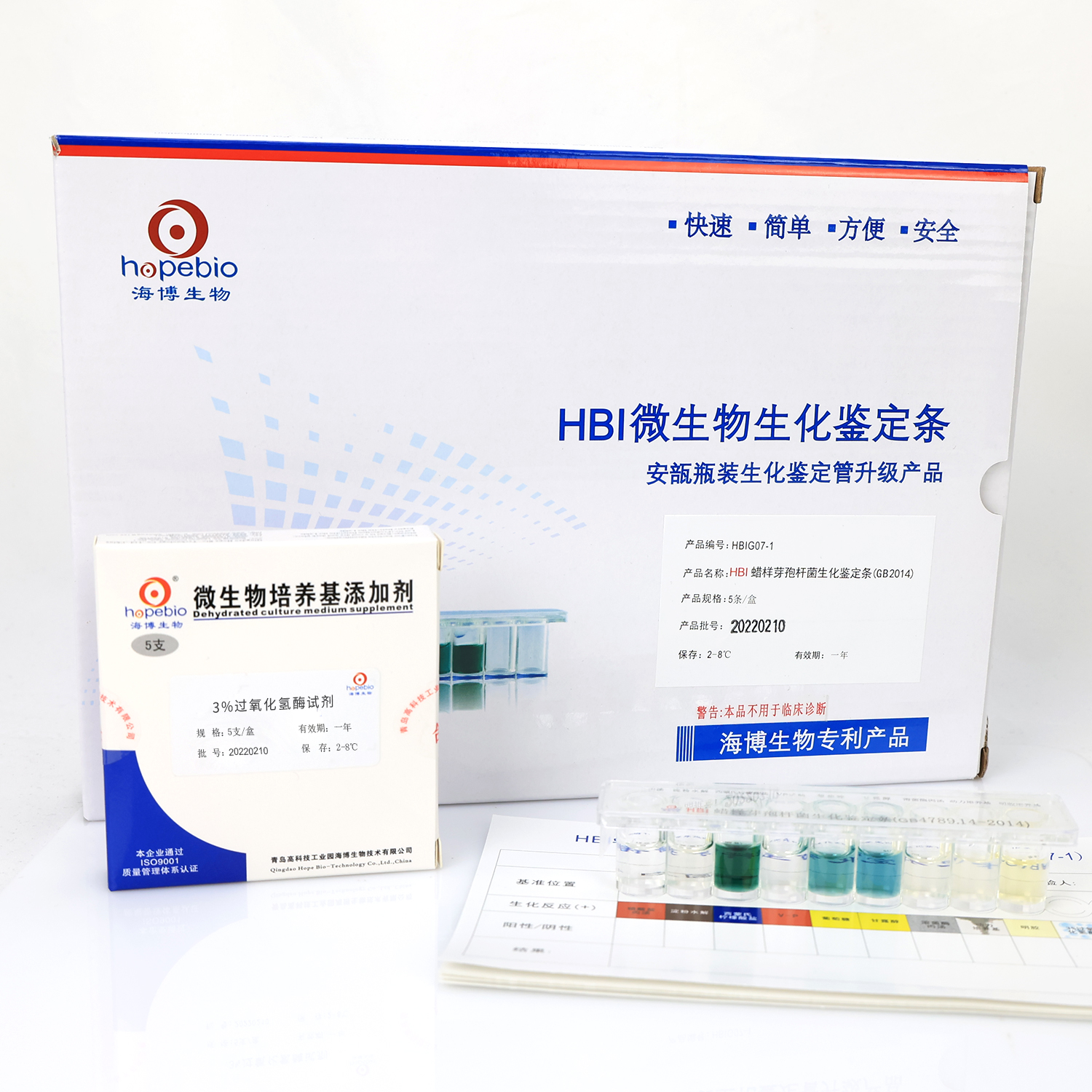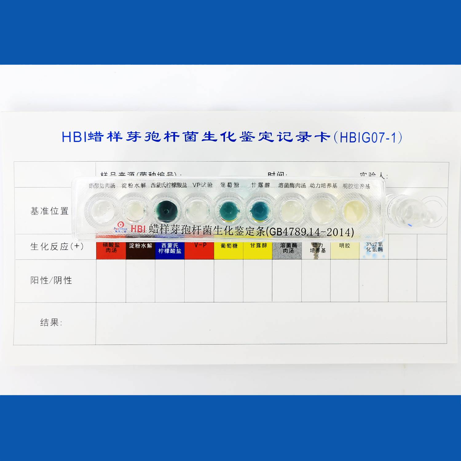 用于蜡样芽胞杆菌生化试验,每条包括:西蒙氏枸橼酸盐 、动力培养基、硝酸盐肉汤、VP试验 、明胶培养基 、溶菌酶肉汤、淀粉水解、甘露醇 、葡萄糖 、3%过氧化氢酶试剂共10种生化反应。(GB标准)