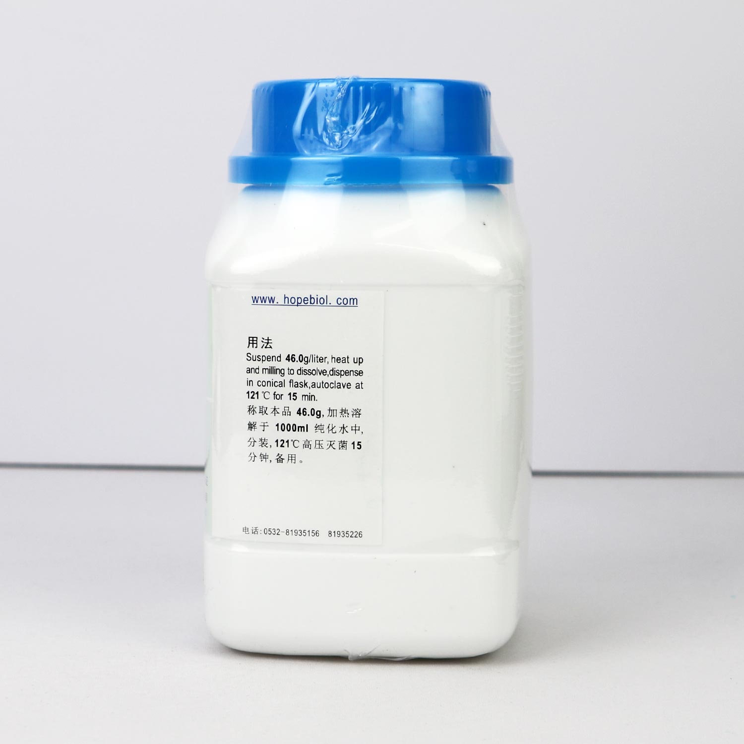 称取本品46g,加热溶解于1000ml纯化水中,分装,121℃高压灭菌15分钟,备用。