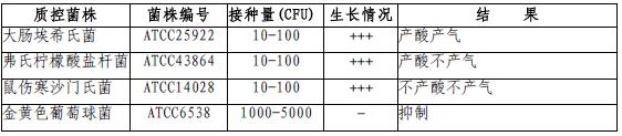接种以下质控菌株,放置36±1℃需氧培养24±2小时。