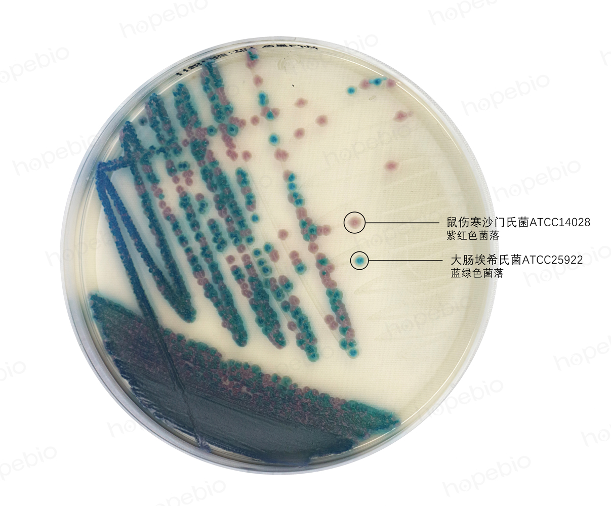 用于阪崎肠杆菌的显色培养,阪崎肠杆菌显蓝色,其它肠杆菌显无色 |