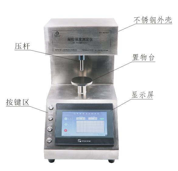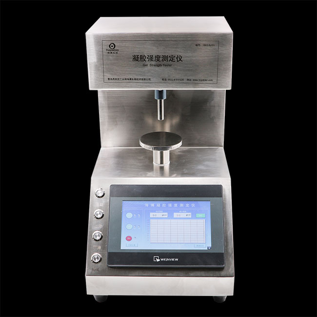 HBS-NJ01凝胶强度测定仪 可用于琼脂、卡拉胶、果胶、海藻胶、槐豆胶、角豆胶、黄原胶、明胶、瓜尔豆胶、刺槐豆胶、魔芋胶、可得然胶、高吸水树脂、高分子水凝胶等胶体的凝胶强度测定。符合国际标准方法( ISO 9665 Adhesives-Animal glues-Method of sampling and testing ) 测定胶体强度、国家标准GB 28304-2012可得然胶凝胶强度测定和国家标准GB6783-2013明胶凝冻强度测定。