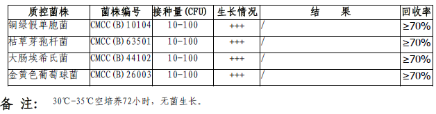 接种以下质控菌株,放置30-35℃需氧培养48-120小时。